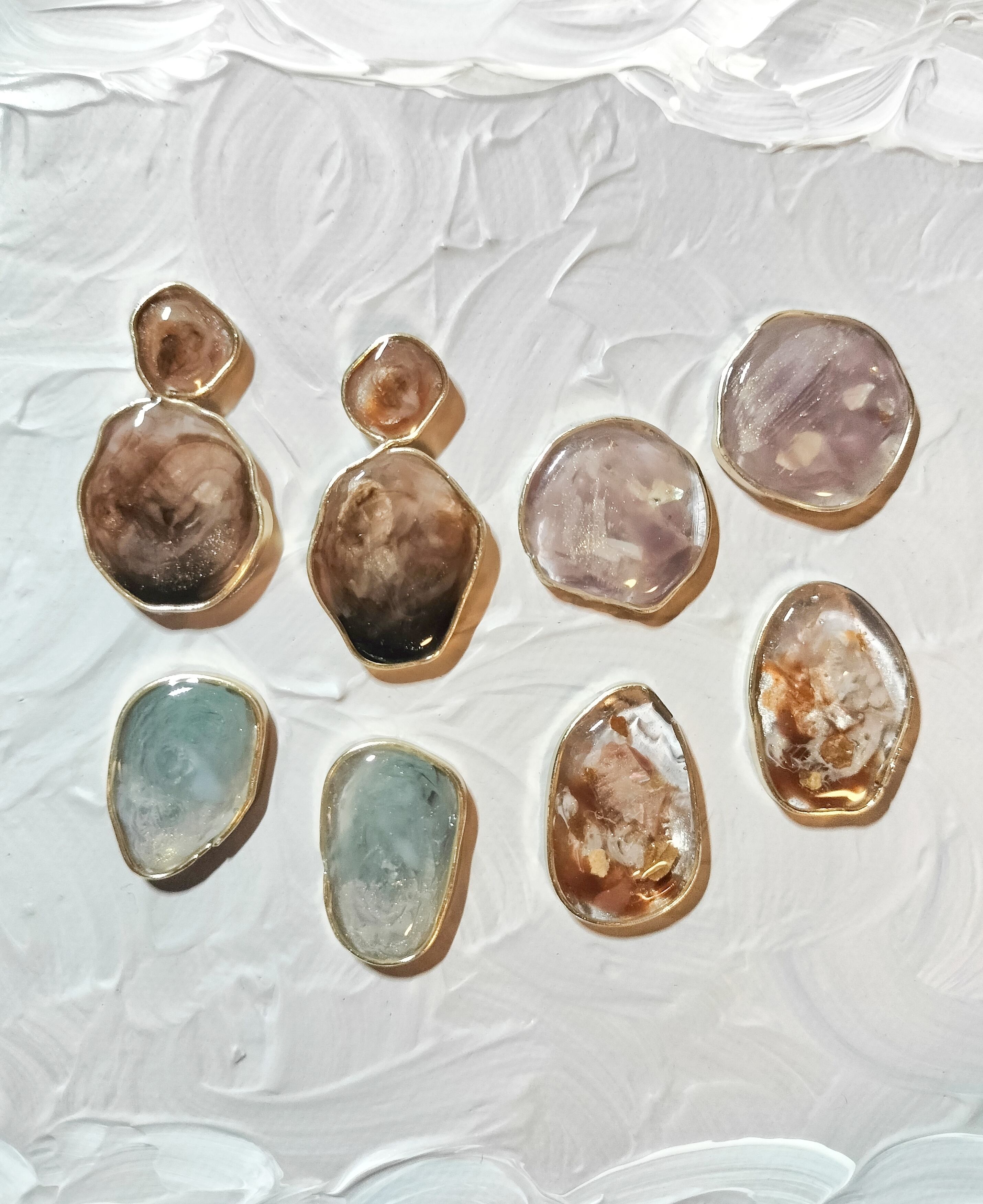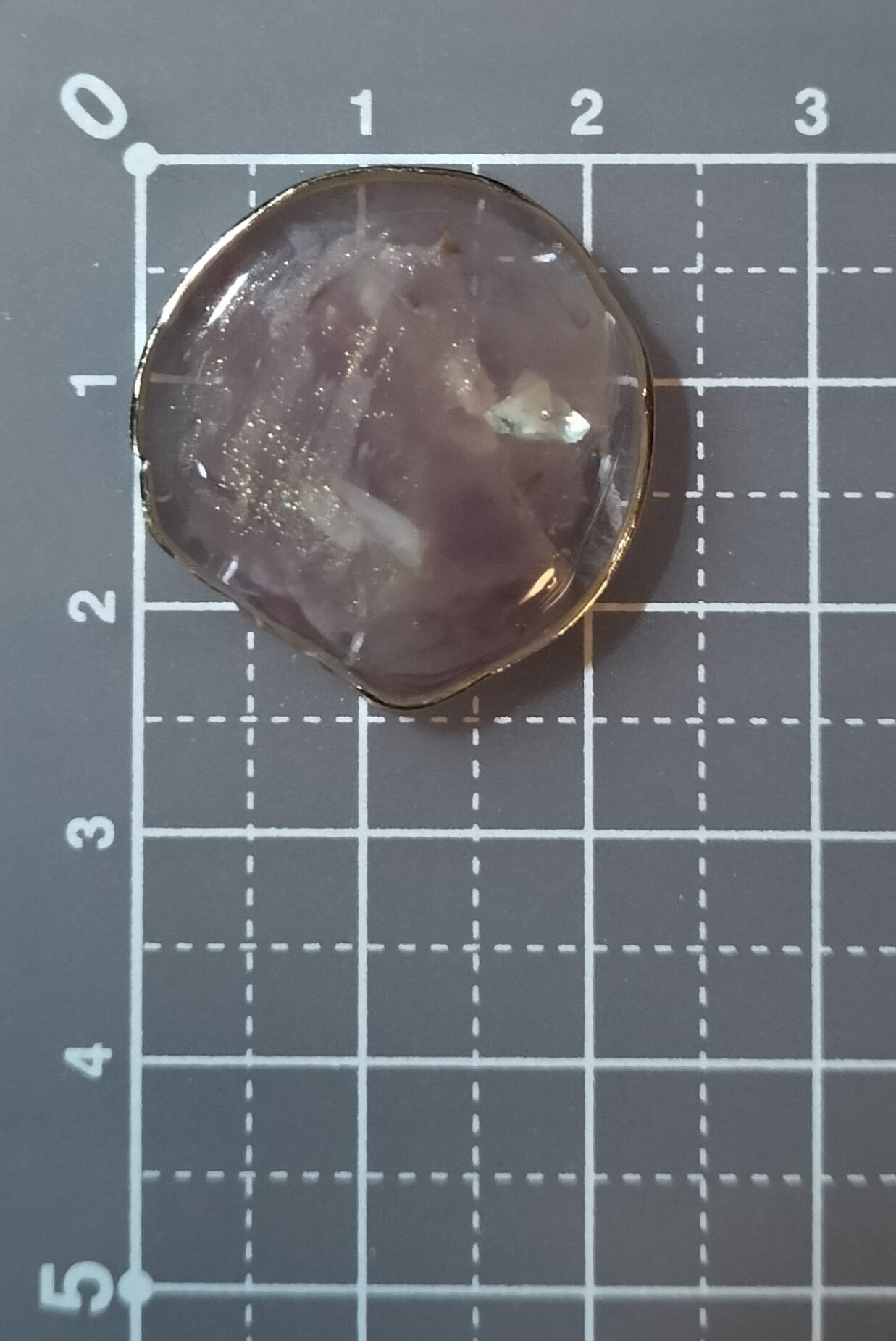 レジンでパーツを作り、イヤーパーツに仕立てました。クリアな箇所を残し、パープルをベースにホワイト、シルバーフレークを混ぜ、上からシルバーを重ねました。